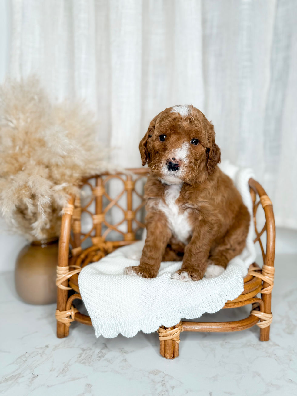 APRICOT / RED SOLID COATS WITH AND WITHOUT WHITE (ABSTRACT MARKINGS AND POSSIBLE TUXEDO), RED PARTI, STRAIGHT/WAVY/CURLY COATS